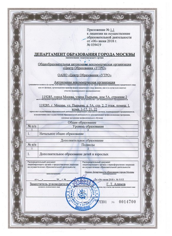Здесь бережно развивают интеллект детей и готовят их к самостоятельной жизни в новейшей информационной эпохе. Педагоги не просто занимаются подготовкой к детскому саду и школе, обучая различным навыкам и техникам коммуникации. Именно после таких занятий дети начинают осознавать себя как самостоятельные личности и уже в раннем возрасте начинают понимать, чем хотят заниматься в жизни. Не стоит экономить на времени и развитии ваших детей, они - это ваше будущее. Частная школа Утро представляет собой проверенное место, где готовы развивать способности ваших детей, обучать их навыкам коммуникаций, нести идею искренней дружбы, а также учить их не бояться всех трудностей, которые могут встретиться в жизни.